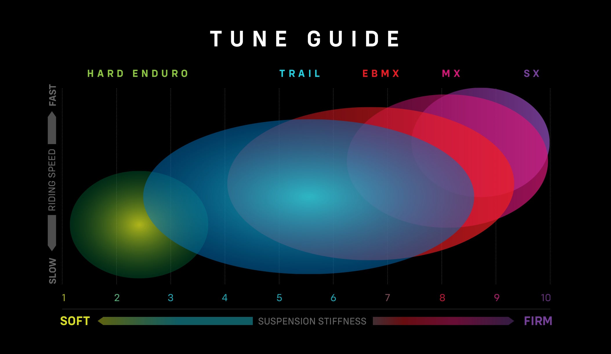 SX is a custom Supercross tune, which is essentially a very stiff MX tune to handle the largest jumps and hits.