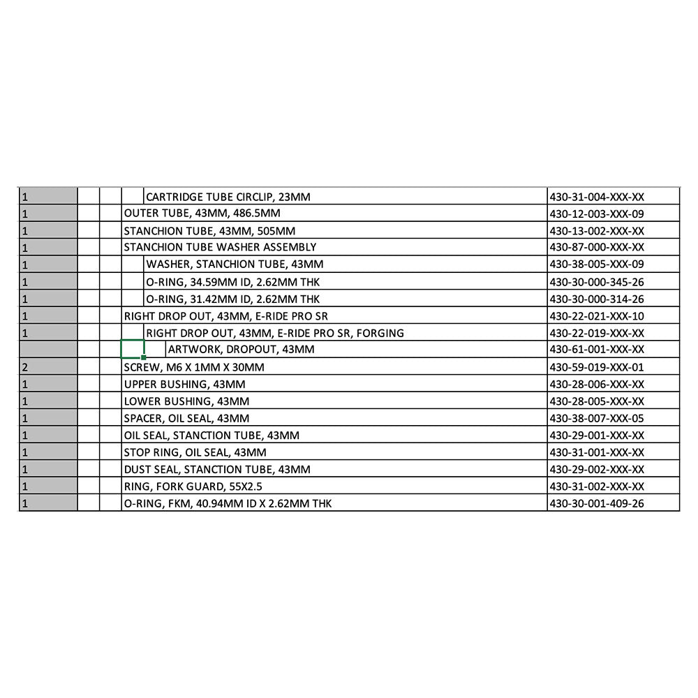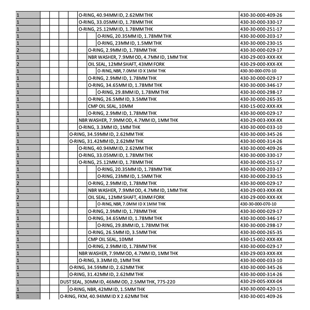Service parts for F43 CMX forks.