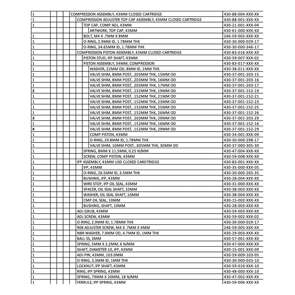 Service parts for F43 MX Tune forks for Surron Ultra Bee.