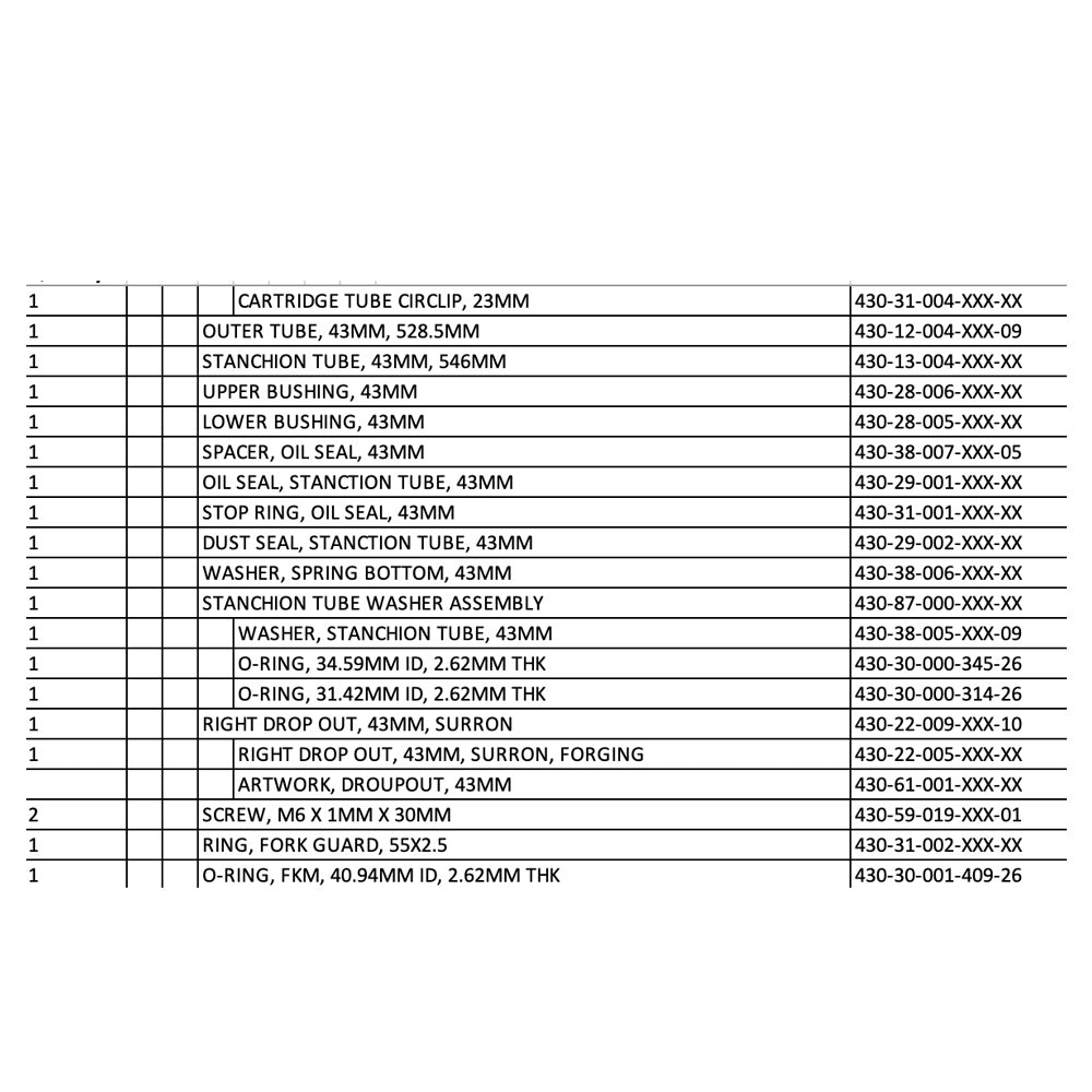 Service parts for F43 SX Tune forks for Surron Ultra Bee.