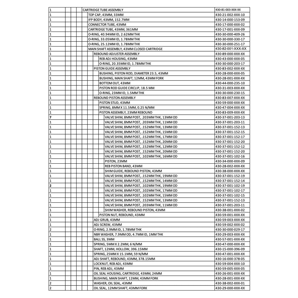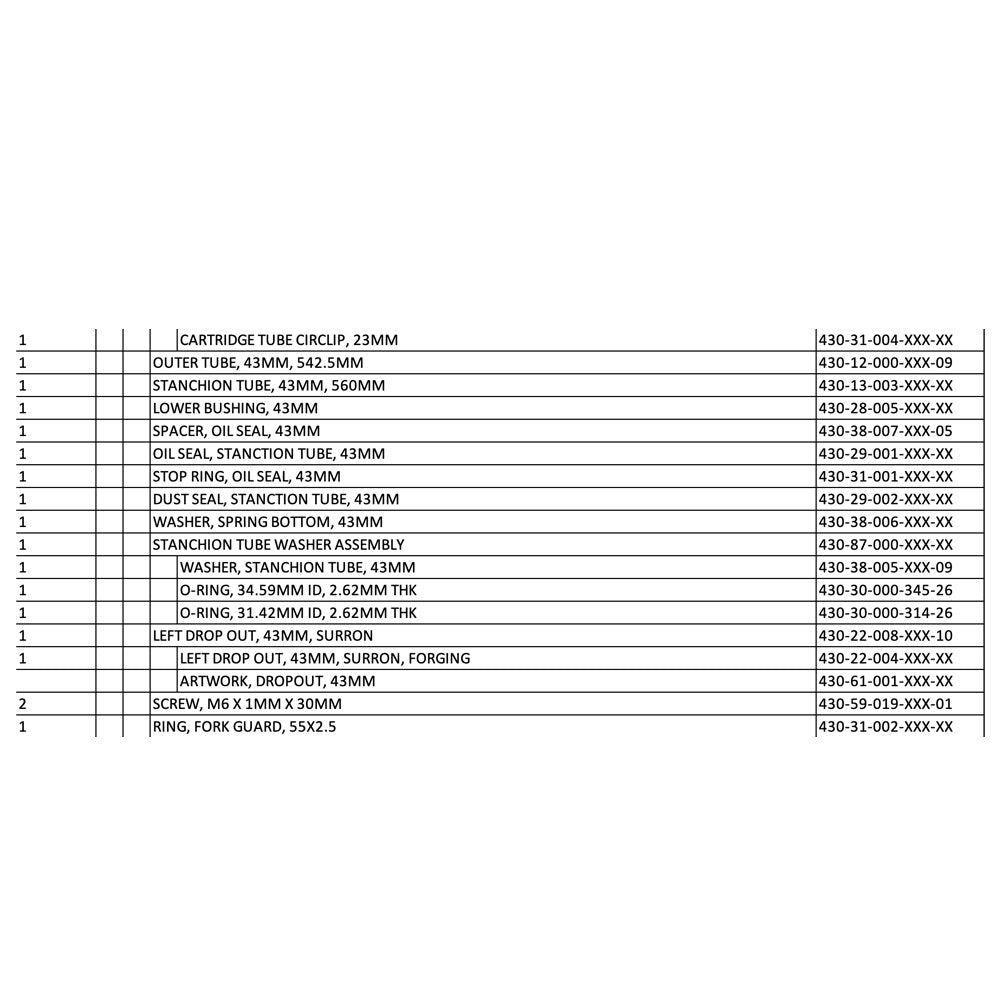Service parts for F43 Trail Tune forks for Surron Ultra Bee.