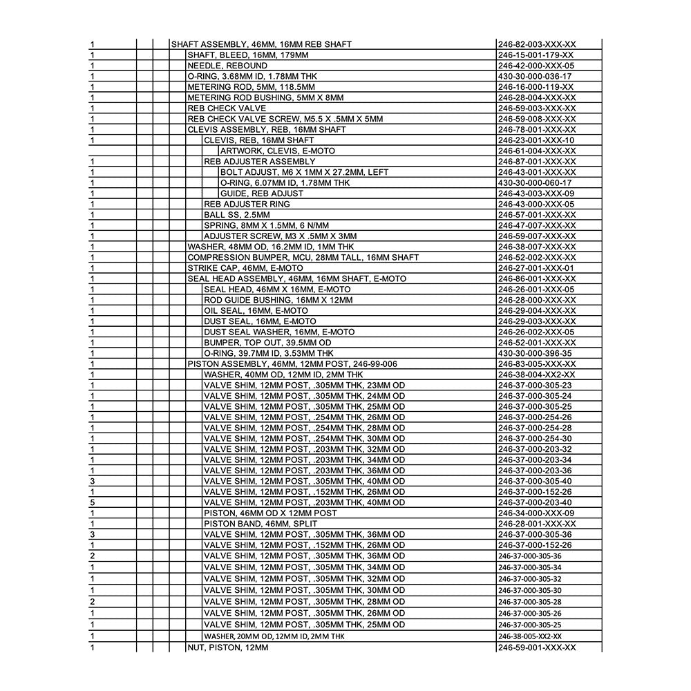 EBMX TUNE SHAFT ASSEMBLY, 46MM, 16MM REB SHAFT