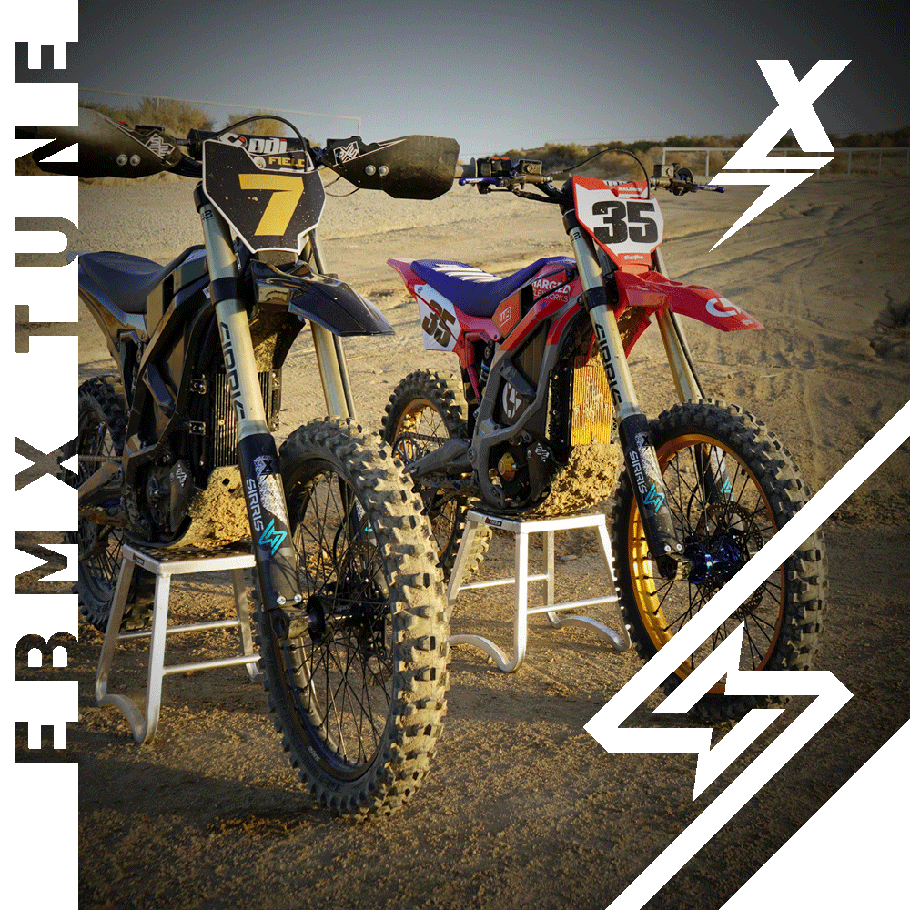 A tune specifically made for modified bikes in collaboration with EBMX. It's designed to work with a longer travel front fork (260mm) and is intended for a mix of light moto and aggressive trail. It uses a firmer tune than Trail tune for bottoming resistance and a stiffer rear spring to handle increased bike weight and power delivery of EBMX components.