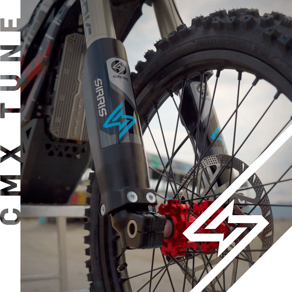 F43 CMX fork for compact size E-motos: E-Ride Pro SR and 3.0, Surron LBX, Talaria MX5, Ventus One+, and more.